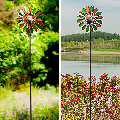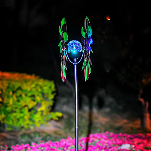 Kinetic Garden Art die wordt geleverd met LED-verlichting op zonne-energie – het installeren van onze metalen pinwheels voor tuin en tuin vormt een aanvulling op de algehele levendige en ontspannen sfeer die u probeert te bereiken en zal perfect harmoniëren met uw bestaande gazonornamenten.