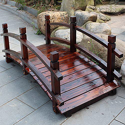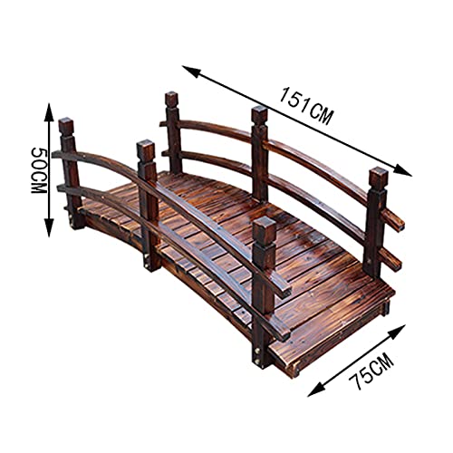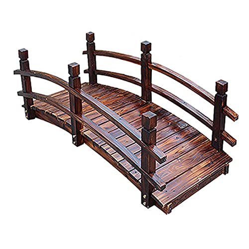5FT houten tuinbrug met dubbele veiligheidsleuningen, buitenvijverbrug loopbrug groot, miniatuurbrug voor landschappen, gazondecor, watertuindecoratie, verkoolde kleur
