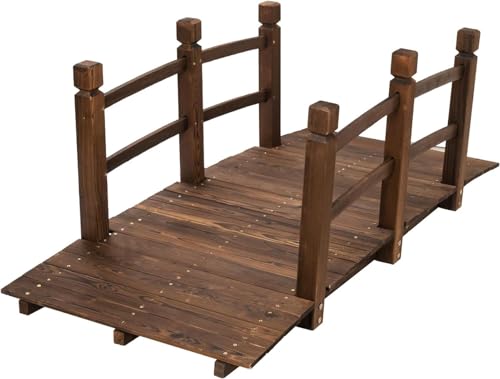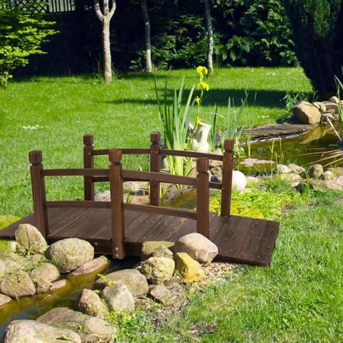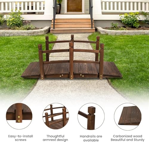 High-Quality Wood: The carbonized finish allows you to use it outdoors for a long time without cracking or splitting. This outdoor garden bridge’s solid arch frame and screws ensure high durability and a 500 lbs weight capacity.