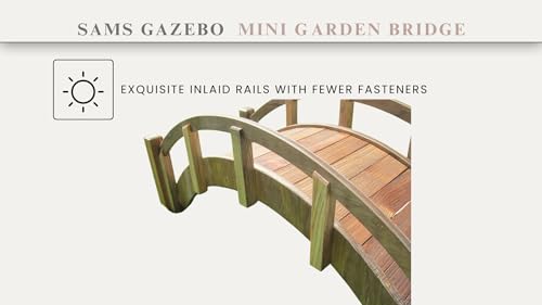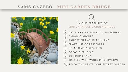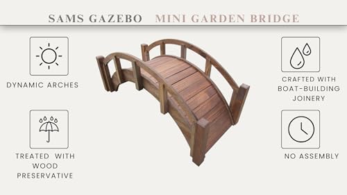 SamsGazebos? Miniatuur Japanse houten tuinbrug, behandeld, gemonteerd, 25″ lang x 11″ hoog x 11-1/2″ breed, gemaakt in de VS