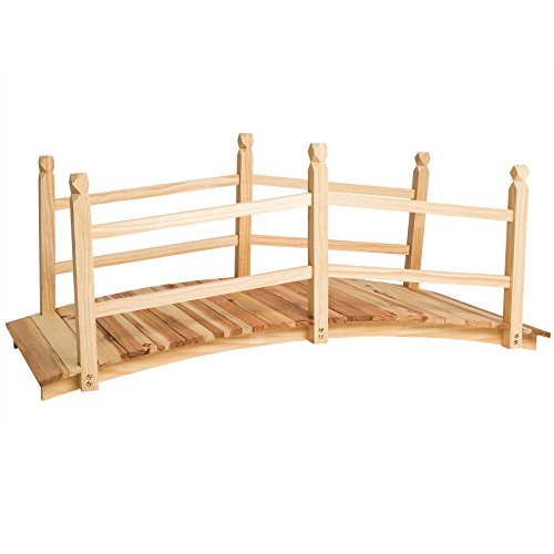 Bruggen verbinden! Deze leuke houten brug met leuning wordt de blikvanger in uw tuin! De tuinbrug is perfect over kleine slootjes, beken, vijvers, etc. Het mooie ontwerp van de brug zal uw tuin er prachtig doen uitzien. Zo kunt u in een handomdraai een kleine tuinoase creëren. Kwalitatief, gebogen ontwerp Het dennenhout gaat discreet op in de natuurlijke omgeving Lengte van de brug: ca. 140 cm Breedte van de brug: ca. 60 cm Eenvoudige montage Draagvermogen tot 150 kg
