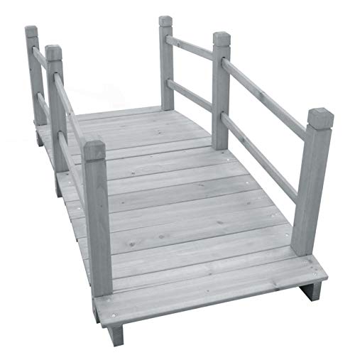 Deze brug is gemaakt van weerbestendig massief dennenhout en is duurzaam genoeg om het hele jaar door buiten te worden gebruikt.