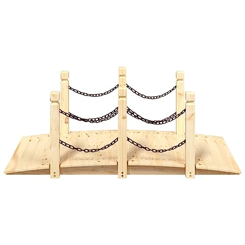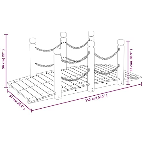 vidaXL Tuinbrug met kettingrails 150x67x56 cm massief vurenhout, vijverbrug, tuinvijver brug, houten brug voor tuin, houten tuinbrug