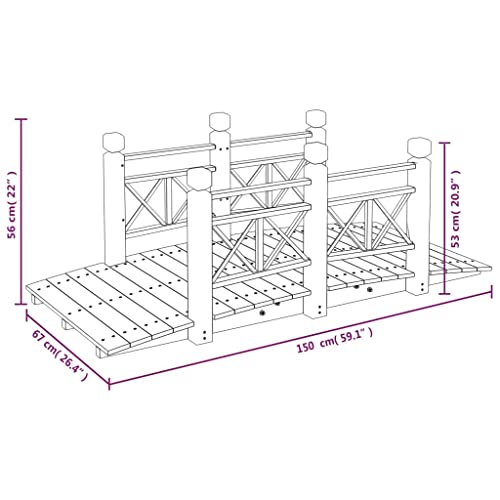 vidaXL Tuinbrug met leuningen 150x67x56 cm massief vurenhout, vijverbrug, tuinvijver brug, houten brug voor tuin, houten tuinbrug