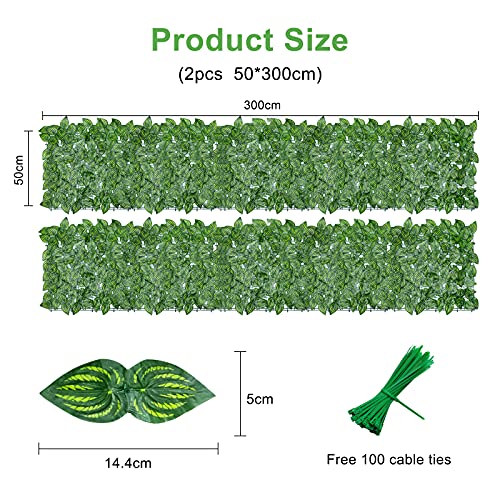 AGJIDSO Kunstmatige klimopomheining, 3m x 1m (2 * 3×0,5m) kunstmatige heggenpanelen, privacyhekscherm voor tuin, balkon, buiten