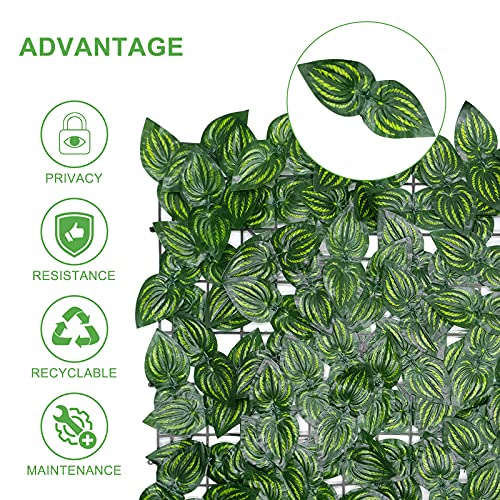 Veilig en duurzaam: De kunstmatige buxusomheining is uitstekend duurzaam en natuurlijk, en verkleurt niet in ruwe omgevingen. Elke kunstmatige schuttingmuur is gemaakt van fris, niet-toxisch plastic, klein en verfijnd, met tweekleurige groene buxusbladeren, ziet er natuurlijk uit en is gemakkelijk schoon te maken.