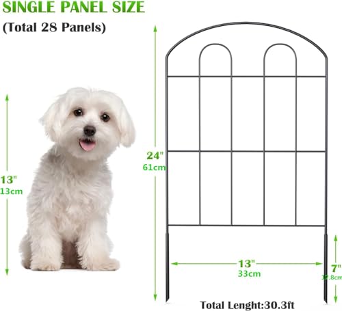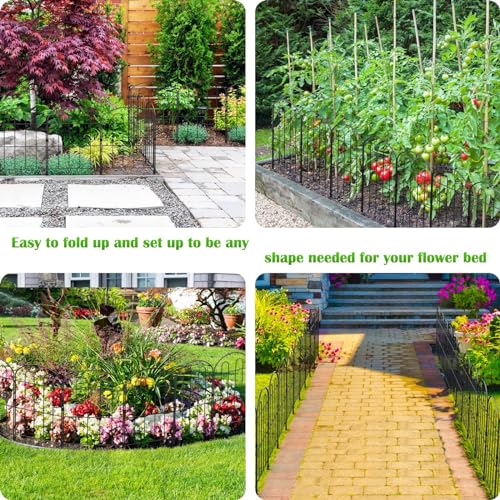 MAAT & FLEXIBELE INSTALLATIE: Deze zwarte metalen tuinomheining is een hoog hekwerk met een enkele paneelgrootte van 24 inch hoog x 13 inch breed, 28 panelen in totaal, de hele lengte is 30 voet lang. Deze panelen van de draadomheining kunnen worden uitgebreid tot verschillende vormen volgens uw speciale toepassingen van padranden. Perfect voor je mooie tuin, tuin en terras.