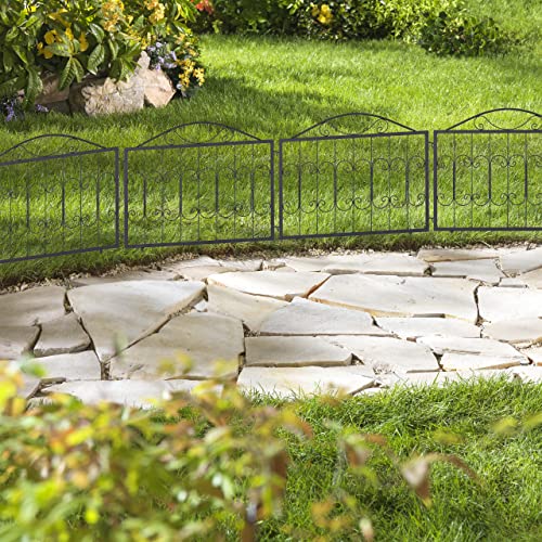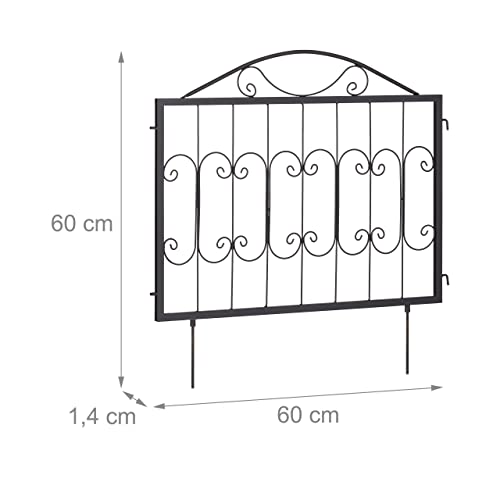 Relaxdays perkhekje metaal, HxB: 60×60 cm per deel, laag tuinhekje om in de grond te steken, 4 sierlijke hekdelen, zwart
