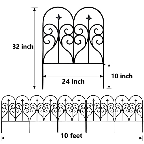 Afmetingen en roestvrij materiaal: één stuk meet 82 cm hoog x 60 cm breed, pak van 5 panelen, totaal 3 m lang. Dit smeedijzeren hek is gemaakt van hoogwaardig metalen materiaal en een duurzame gepoedercoate afwerking helpt roesten te voorkomen en doorstaat de tand van tijd en weer. IJzer-, roest- en corrosiebestendig, stevig en duurzaam voor jarenlang gebruik buitenshuis.