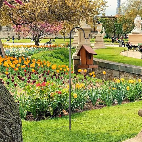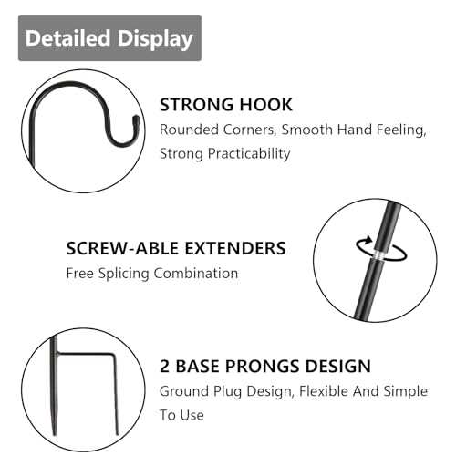 Stabiel en duurzaam: de herdershaken voor de tuin zijn gemaakt van hoogwaardig en duurzaam ijzermateriaal, de gladde zwarte poedercoating kan effectief roest voorkomen, kan lange tijd zonder roesten of vervagen worden gebruikt. Ze zijn super sterk en ondersteunend, niet gemakkelijk te kantelen wanneer geïnstalleerd.