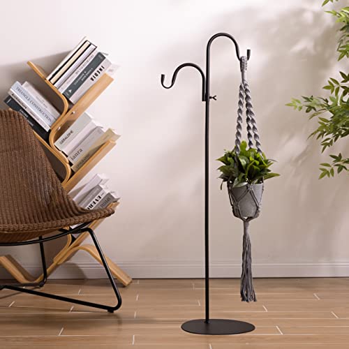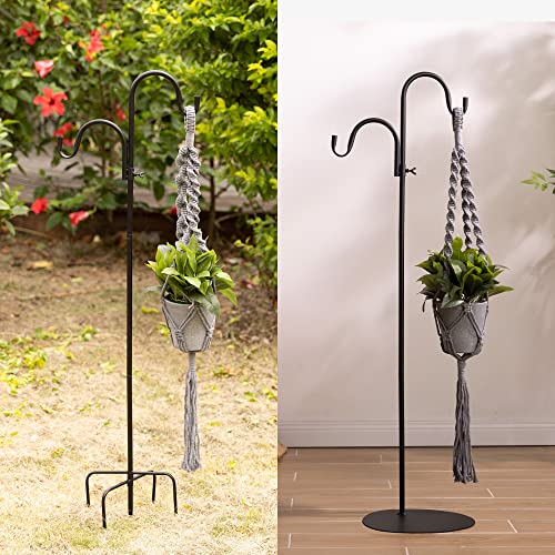 Navaris plantenhaak binnen of buiten – Staande tuinhaak voor planten of decoratie – Herdershaak van staal met 2 haken – Verstelbare hoogte
