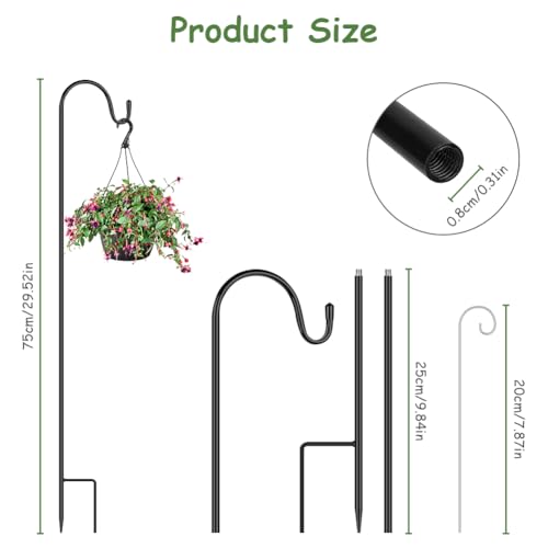 Set bevat: je ontvangt 2 herdershaaksets, 4 metalen stangen voor plantenborden en herdershaakonderdelen. Elke haak bestaat uit 3 delen, elk deel is ca. 25 cm lang (zonder schroefdeel) en de gemonteerde lengte bedraagt ca. De 75 cm lange, gevorkte en extra lange basistanden helpen om de haak in de grond te planten en een rechte positie te behouden.