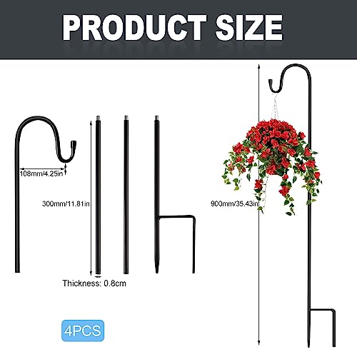 TUZHE 4 stuks tuinherdershaak, 90 cm, lantaarnstok, metaal, tuinstok, herdershaak, haak met houder voor vogelkooien, solarverlichting, lantaarns, bruiloften, plantenmanden