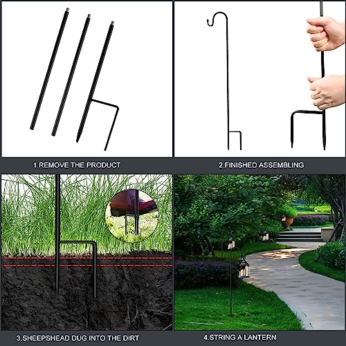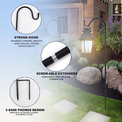 Roestvrij en duurzaam: onze herdershaken voor buiten zijn gemaakt van hoogwaardig ijzer, hoogwaardig ijzer met een gladde zwarte poedercoating om roest te voorkomen en de levensduur te verlengen. Onze herdersstok heeft dikkere pennen en wordt geleverd met hoogwaardige waterdichte doppen voor betrouwbare kwaliteit.