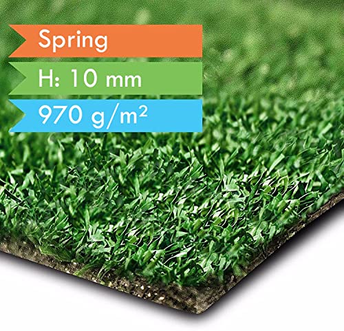 Floordirekt Kunstgras Spring – grastapijt outdoor – kunstgrastapijt voor tuin, balkon & terras – rolgras per meter – uv-bestendig en weerbestendig – (100 x 200 cm, 10 mm, groen)