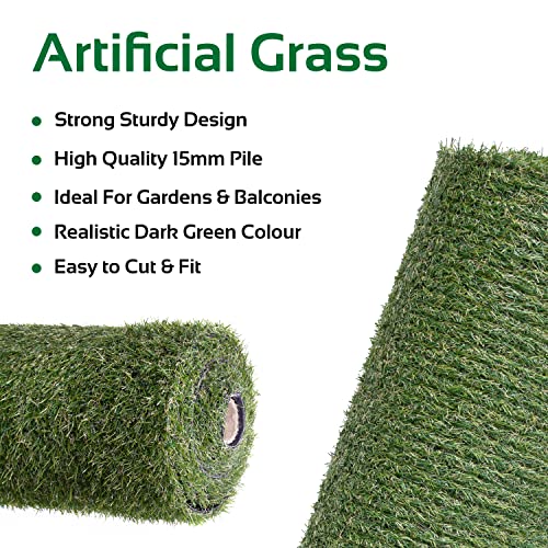 Specificaties: GardenKraft 26079 4m x 1m 15mm Stapel Hoog Kunstmatig Gras/Natuurlijk Kijken Groen Astrogras/Hoog – dichtheid Nep Gras