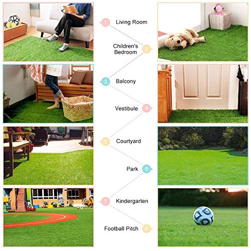 Breed scala van toepassingen: het synthetische gazon is geschikt voor poppenhuis, kinderkamer, balkon, patio, huisdecoratie, kleuterschool en hondengebied voor huisdieren en zo verder groot, waar plaatsen natuurlijk en gezond uitzien.