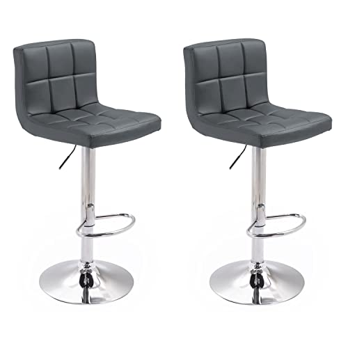 Happy Garden Set van 2 grijze barkrukken MIKE. Moderne designkeukenstoel met in hoogte verstelbare zitting, 360° draaibaar en voetensteun. Krukjes met grijze rug.