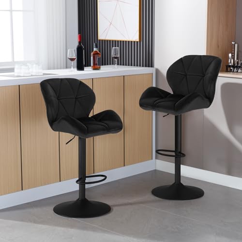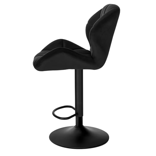 WOLTU Barkrukken Zwart Set van 2 in Fluweel en metaal,360°Draaistoel Verstelbare Barstoelen met Rugleuning En Voetensteun,BH139sz-2