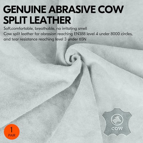 Vgo… Tuinhandschoenen koeienhuid, werkhandschoenen, doornbestendig hulpprogramma voor tuin, vrachtwagenchauffeur, levering tuin met sterke grip, 1 paar