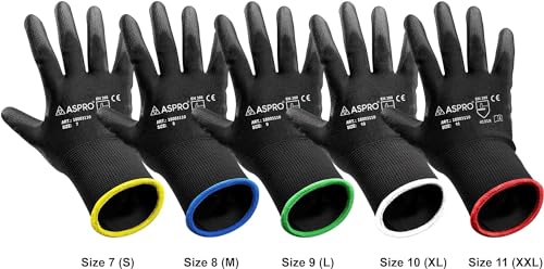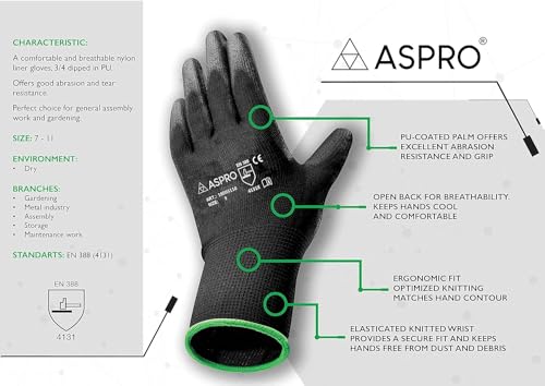Zwarte Nylon PU gecoate werkhandschoenen voor bouwers, tuinders, etc – Door ASPRO