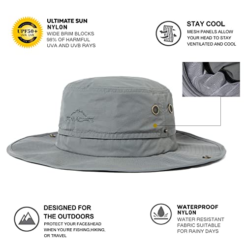 Comhats UPF 50 zonnehoeden brede rand zomer mesh UV-bescherming safari hoed vissen wandelen wandelen boonie hoeden voor mannen kinband waterdicht en ademend, 00702_lichtgrijs, L-XL
