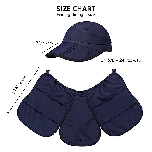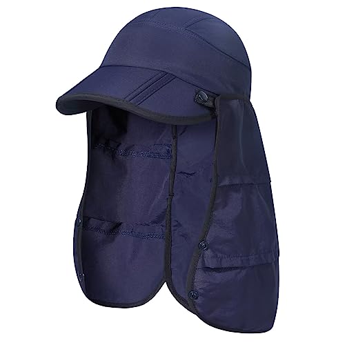GADIEMKENSD UPF 50+ Fishing Sun Cap with Removable Neck Flap Convertible Breathable and Wide Folding Brim for Outdoor Activities