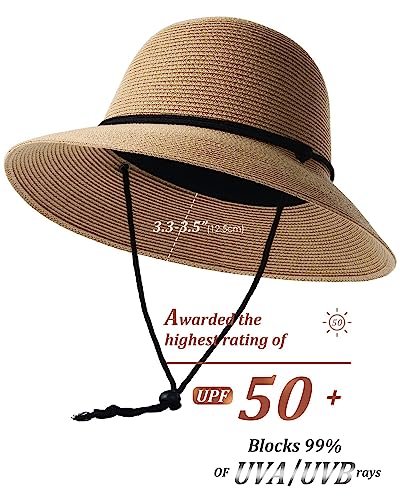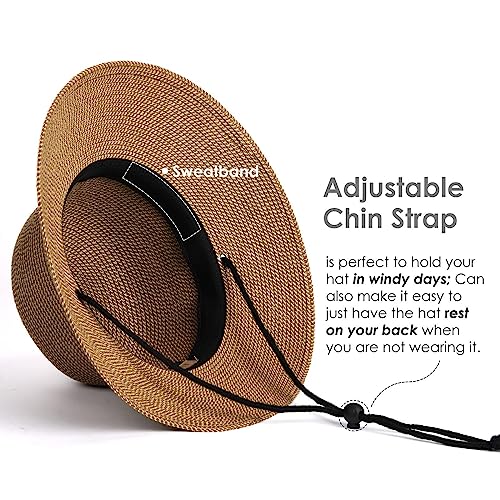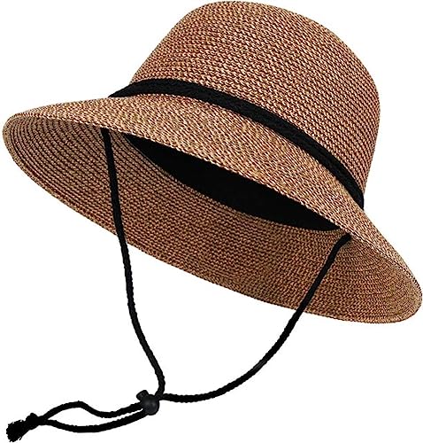NOGRAX Straw Hat Straw Summer Hat Women Sun Beach Hat With Wind Lanyard Wide Brim Foldable Sun Protection Beach Hat