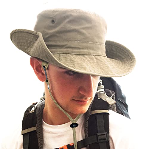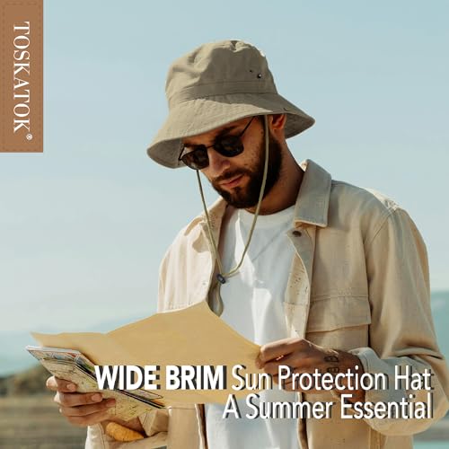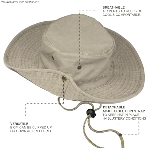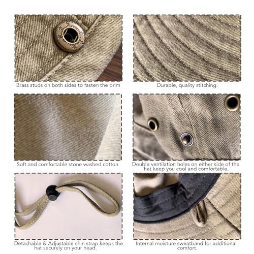 TOSKATOK® UPF 50+ Unisex Safari Outback Australische stijl katoen bush hoed met brede rand, afneembare kinriem, drukknoppen aan de zijkant en ventilatieopeningen
