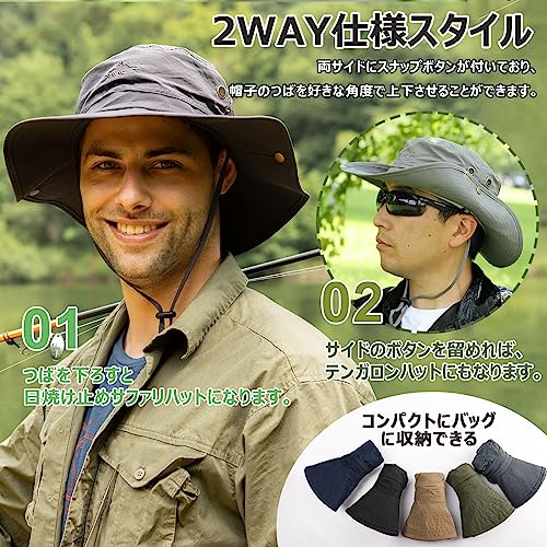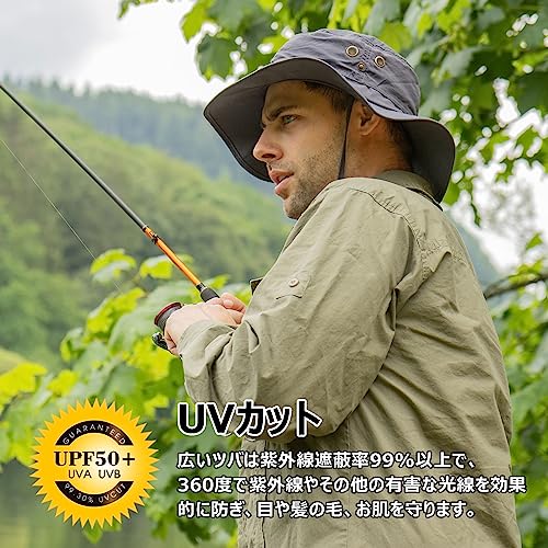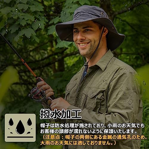 UPF 50 Zonnehoeden met brede rand, zomergaas, UV-bescherming Safarihoed, Vissen / wandelen / wandelen Boonie-hoeden voor heren met kinband, waterdicht en ademend, 00702_grijs, M