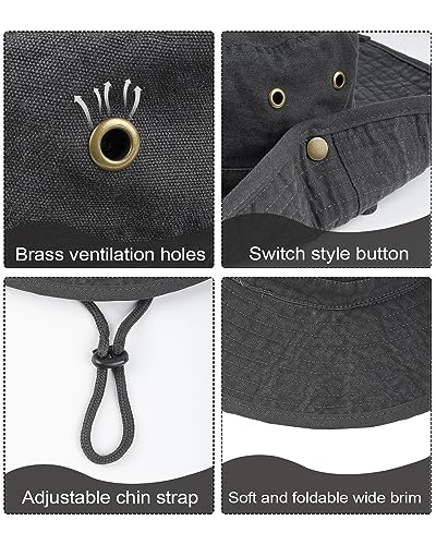 Zylioo XXL bushhoed voor groot hoofd, grote brede rand, wandelhoed, uv-safari-boonie-hoed voor outdoor, vissen, golfen, zwart, 3XL