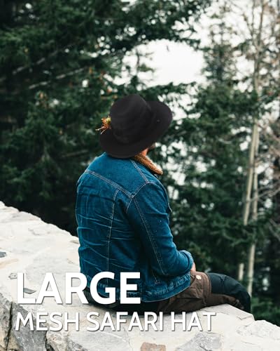 Zylioo XXL oversized safari zonnehoed met brede rand, grote mesh vishoed, zonnebescherming zomerhoed voor wandelen, kamperen