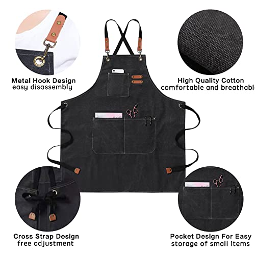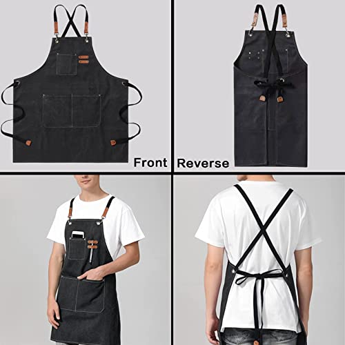jiuzcare Barbecueschort voor mannen, 76 cm, katoenen schort met voorzakken, zakken, verstelbare grillschort met leer bekleed trekkoord, geschikt voor keuken, grill, handgemaakt bakken, bruin