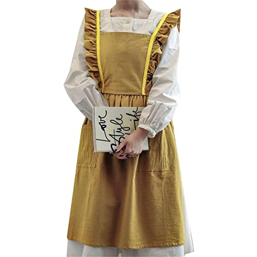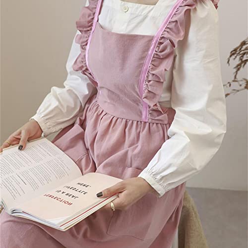Kant Art Schort Kruis Terug Verstelbare Taille Riem Bib Met Zakken Wasbaar voor Bloemist en Keuken Bakken Schilderen, Donker Groen