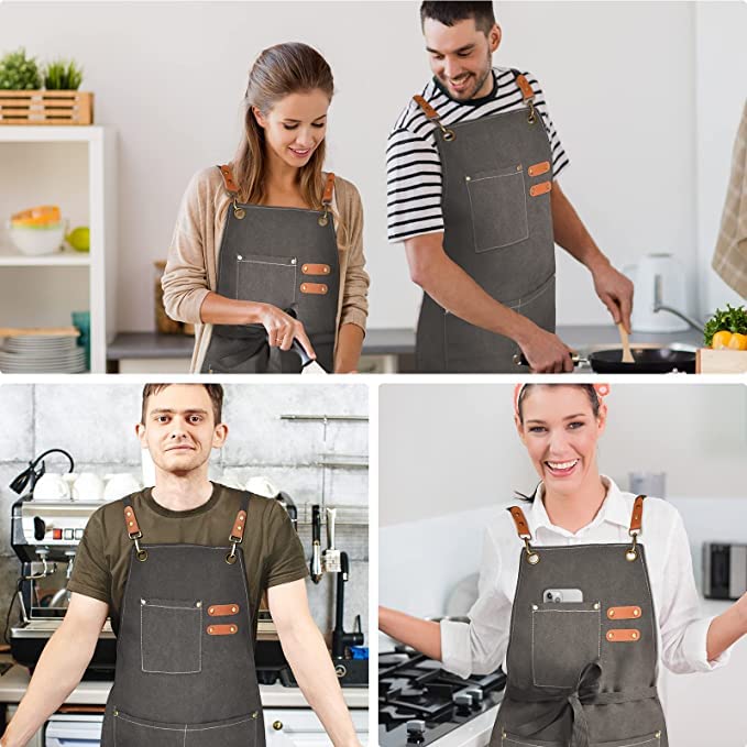 Morwealth Barbecueschort, linnen schort, 68 x 85 cm, met verstelbare kruisriem, keukenschort met 3 zakken, schort voor vrouwen en mannen, voor tuinieren, restaurant, barbecue, Grijs, XL