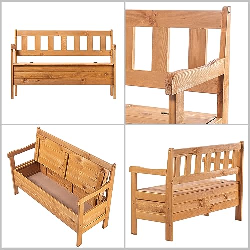 Klassiek: de KADAX opbergdoos onderscheidt zich door een minimalistisch klassiek De-sign. De rechthoekige vorm van de tuinbank met vak in tijdloze bruine tint van het grenenhout past zich goed aan de meeste inrichtingen aan.