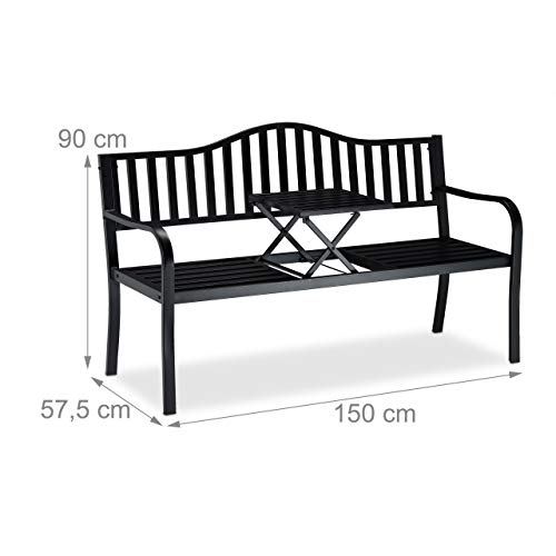 Relaxdays tuinbank met klaptafel, 3-zits, geïntegreerd tafelblad, weerbestendig, HxBxD 90 x 150 x 57,5 cm, zwart