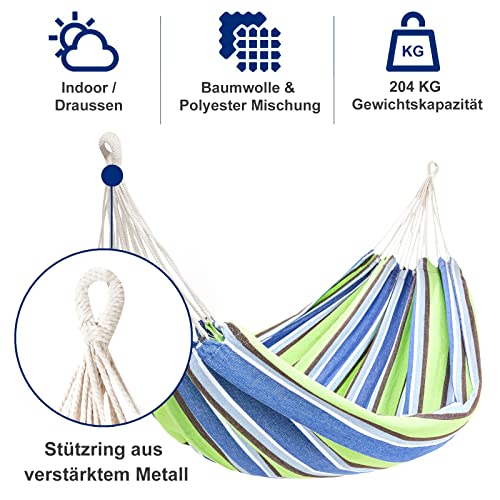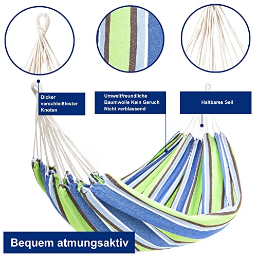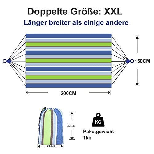 Hangmat, 200 x 150 cm, groot, katoen, 2 personen, XXL, dubbele hangmat, belastbaarheid tot 200 kg, draagbaar, met draagtas voor terras, binnenplaats, tuin