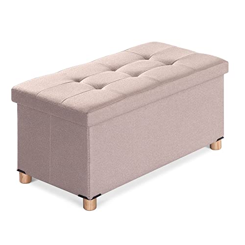 BRIAN & DANY Ottomaanse opbergdoos met 4 houten poten, linnen opbergpoef voor woonkamer, kaki, 76 x 38 x 38 cm