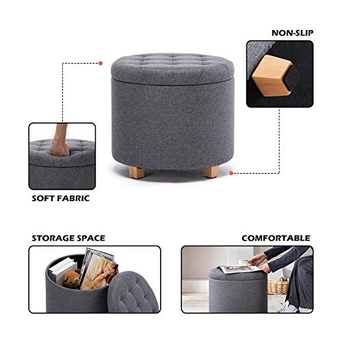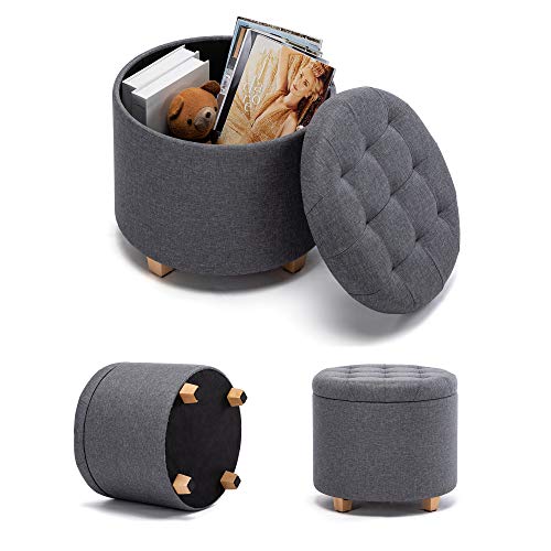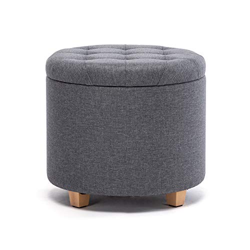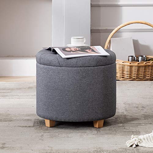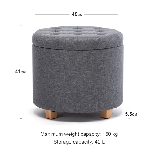 HNNHOME 45 cm ronde linnen Ottomaanse opbergkruk met gewatteerde zitting, voetenbank, poef, stoel met deksel (Lava)