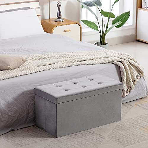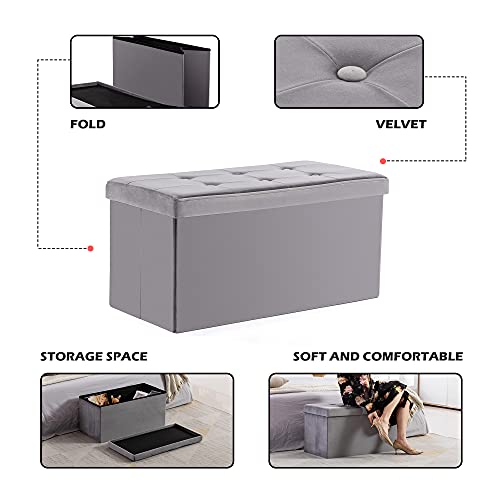 HNNHOME Fluwelen poef, opvouwbare Ottomaanse voetenbank met opbergruimte, speelgoedkist met deksel, opvouwbare voetenbank, stoel voor de woonkamer, slaapkamer (82 x 40 x 40 cm, grijs, groot)