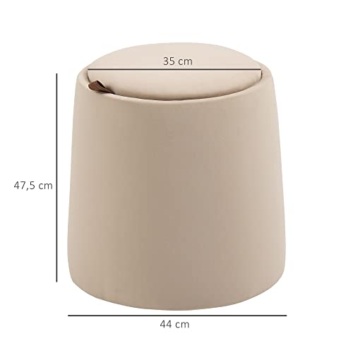 HOMCOM 2-in-1 Ottomaanse kruk, ronde gestoffeerde kruk, voetenbank met opbergruimte, afneembaar deksel in fluweellook, bijzettafel voor woonkamer, slaapkamer, beige, Ø44 cm x 47,5 cm