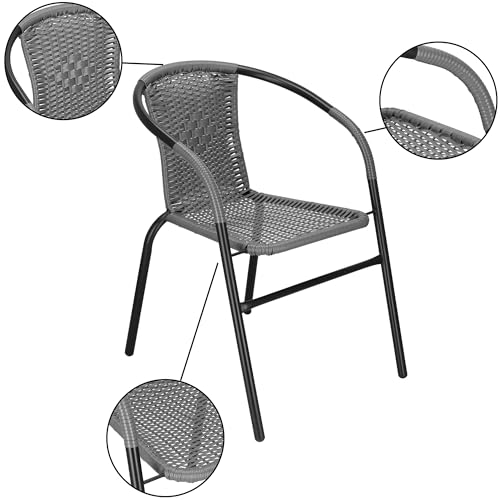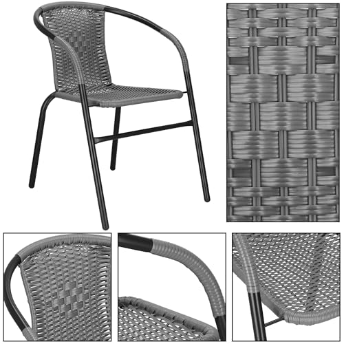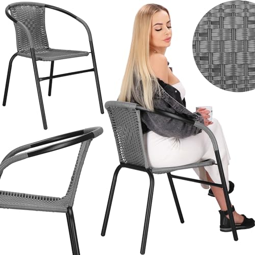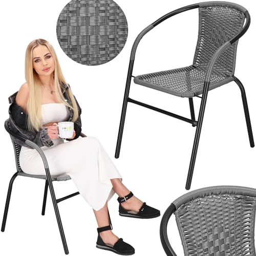 Kenmerken: tuinstoel in grijs, max. belasting bedraagt 130 kg, totale afmetingen: 54 x 53 x 73 cm (b x l x h), frame gemaakt van metaal, zitting: PP-vlechtwerk