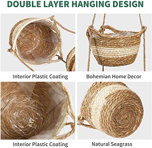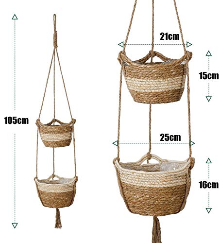 KAHEIGN 2 Size Hangende Zeegras Planter Mand perfect voor het binnen en buiten planten van planten en bloemen, en kan ook worden gebruikt om make-upborstels, lotions, toiletartikelen, kookgerei of andere items die moeten worden opgeslagen te rangschikken.
