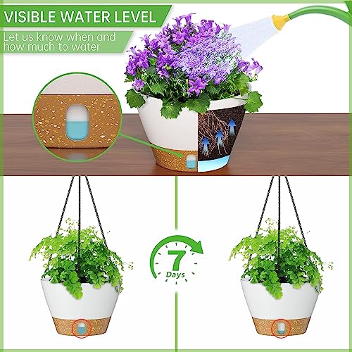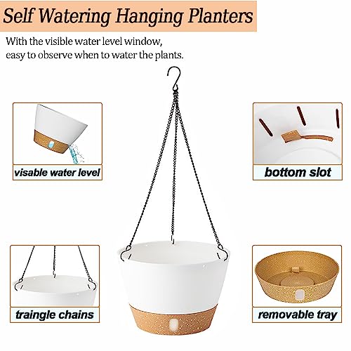 LSRVNM 3-pack hangende plantenpot, 10 inch plantenhanger, zelfbewaterende plantenbakken, hangende bloempot met verwijderbare zichtbare waterniveaubak afvoergaten kettinghaken voor binnen en buiten tuin (grijs-zwart)