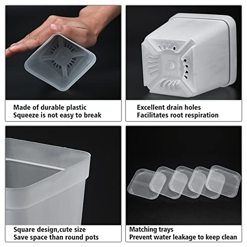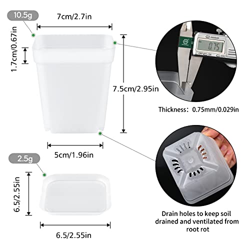 KINGLAKE 24 stuks 7 cm kweekpotten, plantenpotten, kweekpotten, klein, met onderzetter, dunne bloempotten, kunststof, vierkant, voor zaden, vetplanten, transparant