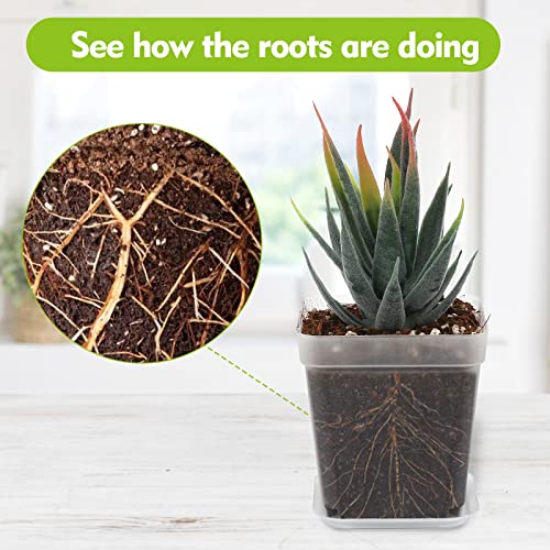 【Wat je krijgt】Pakket bevat: totaal 24 stuks vierkante heldere plantenpotten; Afmetingen: opening 7cm, bodem 5cm, hoogte 8cm.