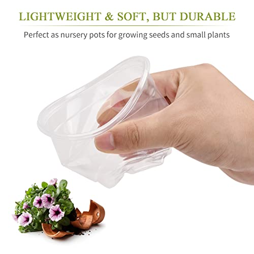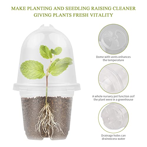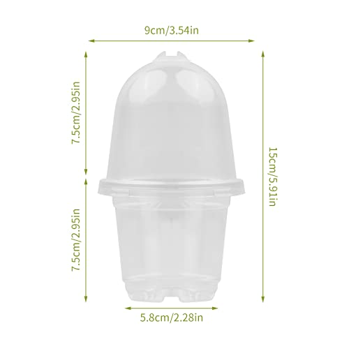 Nivofu Kunststof plantenpotten, transparante set, 10 kweekpotten + 10 vochtkoepels, kweekpotten, orchideeënpotten, ronde bloempotten voor zaden, zaailingen, vetplanten, stekken
