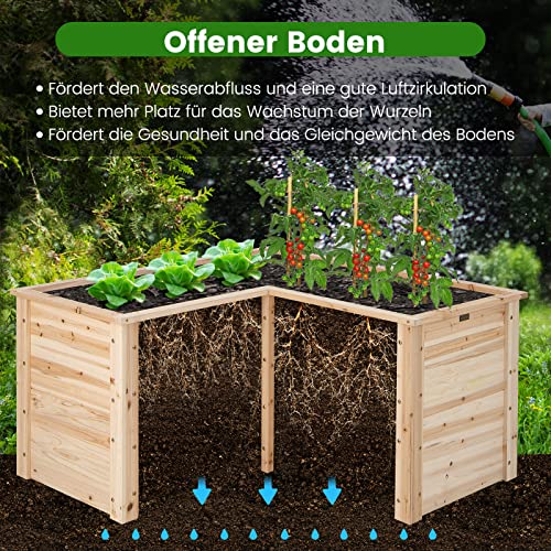 COSTWAY Verhoogd tuinbed van hout, plantenbak voor balkon, tuin, terras, plantenbed, L-vormig, kruidenbak, opzetframe, 120 x 120 x 63 cm, naturel