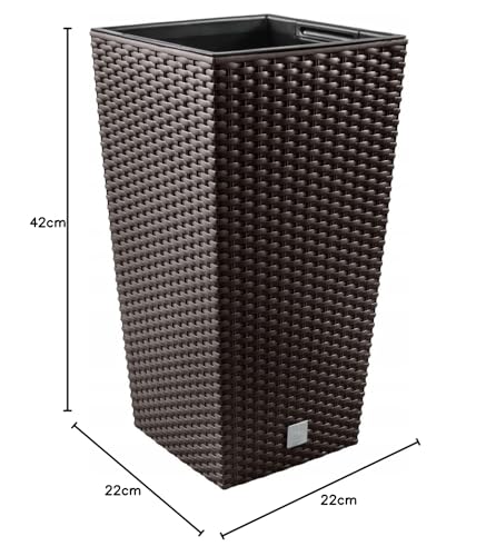 Prime Garden® SquarePotHigh Rotan bloempot pot plantenbak van kunststof met inzetstuk voor huis, tuin, terras, veranda, vierkant, weerbestendig, vorstbestendig, 22 x 22 x 42 cm (Umbra)
